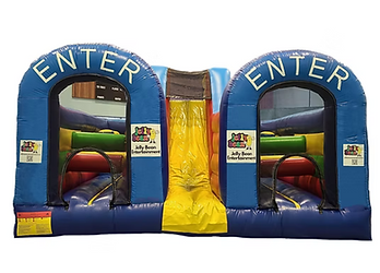 Our most intricate Obstacle Bouncer. With blow-up obstacles on the way in, a hiding spot below the stairs, and a slide on the way out, it's sure to be a home run! This Bouncer is approximately 22' deep x 18' wide x 15' high obstacle course bouncer has heavy-duty vinyl construction and fun at every turn. The Obstacle Bouncer is great for recreational use such as birthday parties, rec centers, churches, schools, etc Some larger bouncers have trouble getting through smaller gates or doors, each of the larger bouncers is around 41 inches wide rolled up Delivery and Setup Information: - Our bouncers include free delivery and setup for locations within a 20km radius of Stavanger Drive. - Travel fees will apply for locations outside a 20km radius of Stavanger Drive, depending on the booking and total kilometers. We will contact you with an update price if this applies. * All Bouncy Castle rentals are now unattended if you require an attendant, please let us know. For Outdoor Bouncy Castles - We require direct access to the setup area with a clear path and no steps/ stairs or long steep hills/inclines to or in the area. - We require access to power- please advise if a generator is needed when booking. - If booking more than one bouncy castle, each bouncer requires its own outlet/ generator. *If multiple blowers are plugged into one outlet, it will trip the breaker. - We require space free of power lines, debris, rocks, trees, water, yard waste, and flat ground for safe operation.(clearance of at least 2 ft for movement during use) - If setting up on asphalt/ pavement, the area must be swept ahead of arrival. (We require notice if setting up on asphalt/ pavement) - Do not cut the grass the day of or 24 hours before the bouncy castles arrival. Additional cleaning fees may be applied if needed. - All animal waste must be removed from the area before setup- we cannot set up on or near animal waste - The bouncy castle will arrive within a 2-hour window before the start time and be picked up within 2 hours after the end time. - If we arrive to set up the bouncy castle and are unable to do so due to weather or safety concerns, you are responsible for and required to pay for the full cost of the rental. Contact Information: For inquiries or to speak with someone before booking, please email: bookings@jeallybeanentertainment.ca or call 709-743-4774.