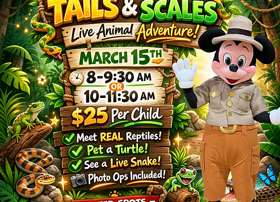 Safari fun is slithering into Jelly Bean Entertainment! Join Safari Mickey and his scaly friends for a morning your little explorers will never forget.